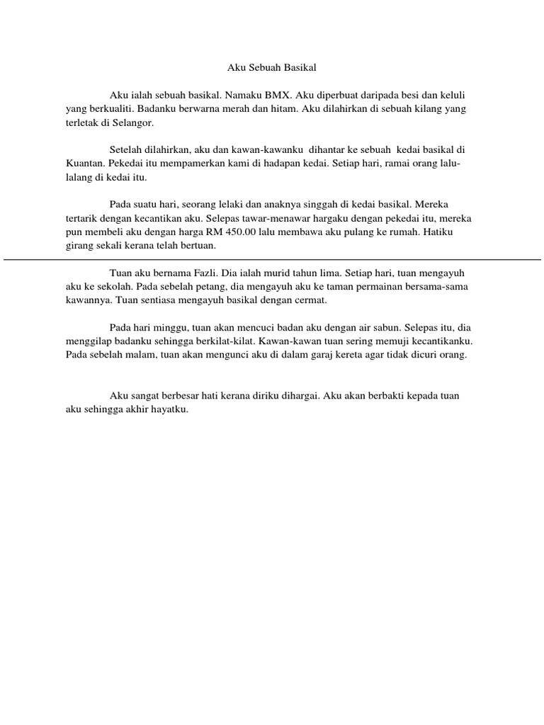 Karangan darjah 4 aku sebuah basikal Saturday December 4 2021 Edit. Parent aku kerja kat Dubai dulu aku stay ngan dorang tapi lepas atuk aku meninggal and takder sape. Aku dilahirkan di sebuah kilang.